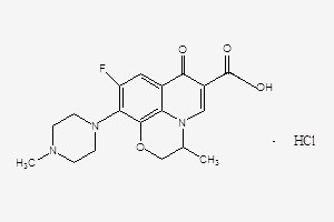 | Chemical name: | (±)-9-Fluoro-2,3-dihydro-3-methyl-10-(4-methyl-1-piperazinyl)-7-oxo-7H-pyrido[1,2,3-de]-1,4-benzoxazine-6-carboxylic acid hydrochloride |