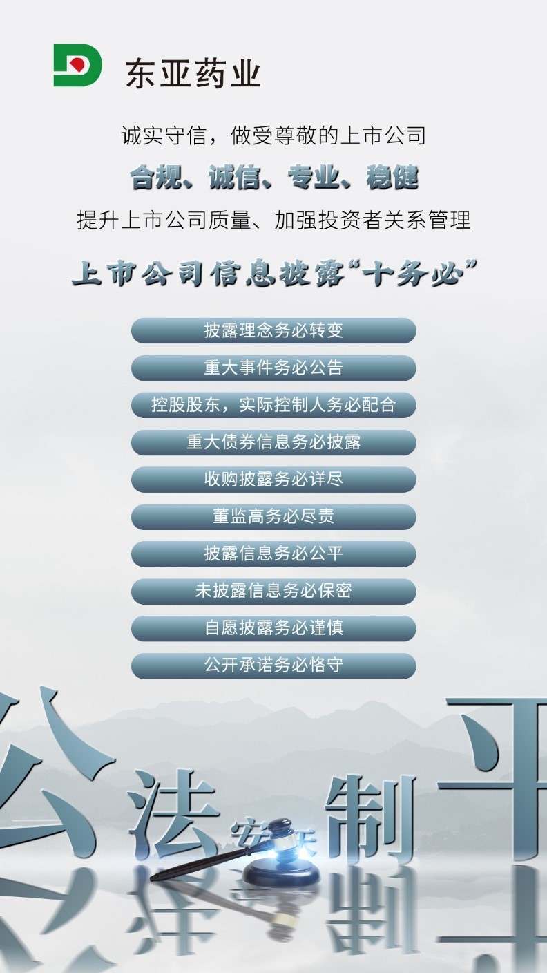 東亞藥業(yè)提醒廣大投資者:知法、學(xué)法、懂法、用法,理性參與投資,維護(hù)自身合法權(quán)益。